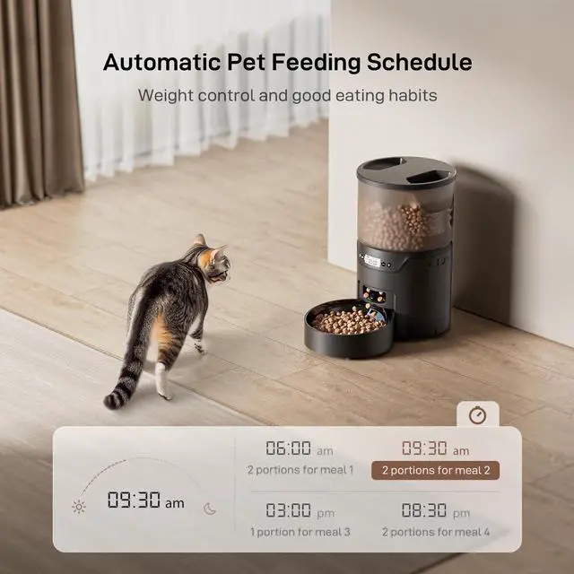 • Reliable Automatic Cat Feeder: Never miss a scheduled meal with zero-delay timed dispensing; Program your auto cat feeder for accurate portion control feeding with up to 20 servings per meal(8g/serving), 1-6 meals per day; Control your cat's eating frequency with a balanced diet to ensure healthy growth