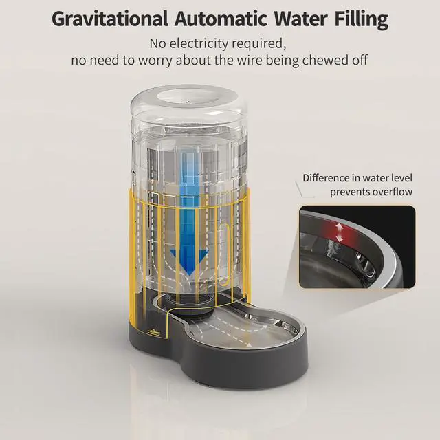 This pet water dispenser is power-free! No electricity required, which makes it super safe for your furry friends.
