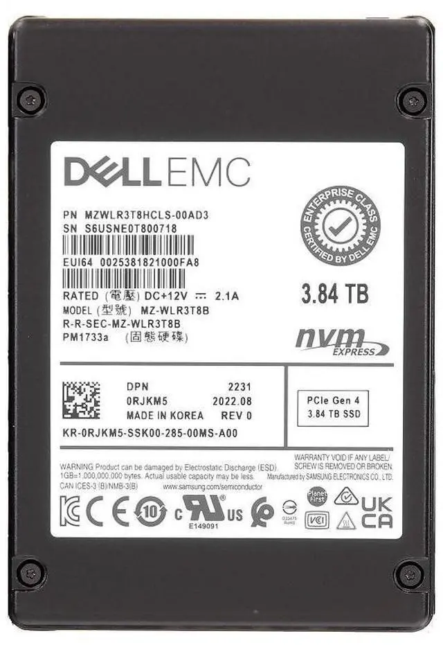 SAMSUNG MZWLR3T8HCLS-00AD3 Pm1733a 3.84 tb Pcie Gen4 Nvme 2.5 inch Solid State Drive.