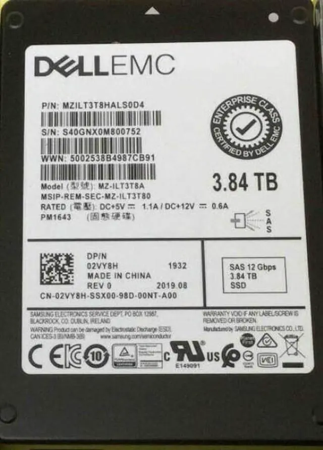 • Samsung MZILT3T8HALS0D4 PM1643 3.84TB SAS 12Gbps 2.5inch Ssd Dell Oem