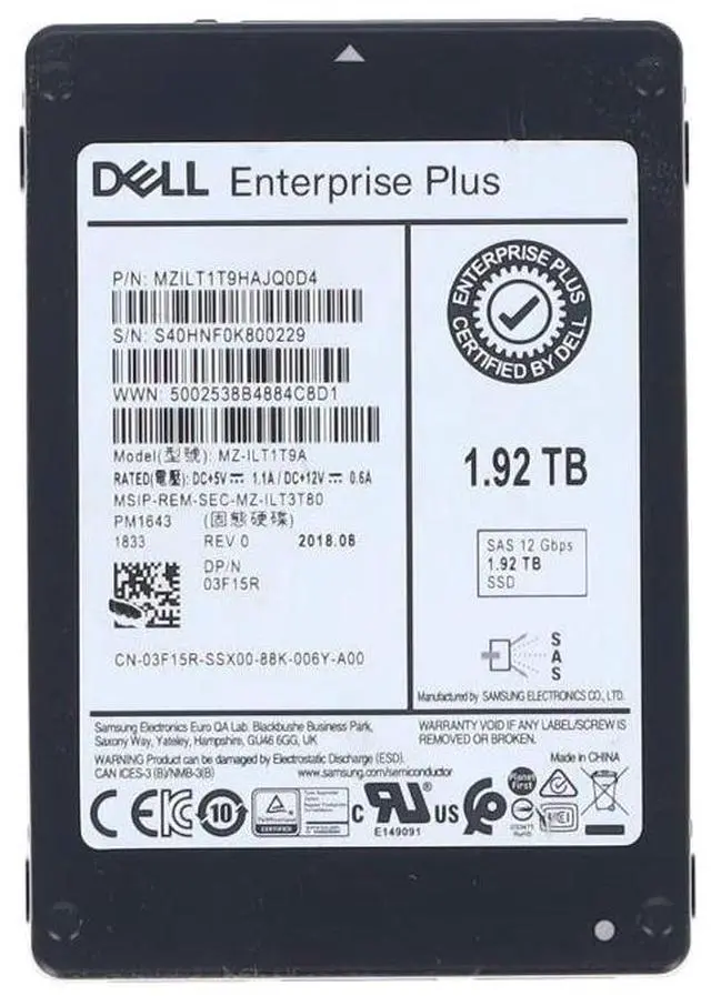 Product Description: SAMSUNG Pm1633 MZILT1T9HAJQAD4 - Solid State Drive - 1.92 Tb - Sas 12gb/s