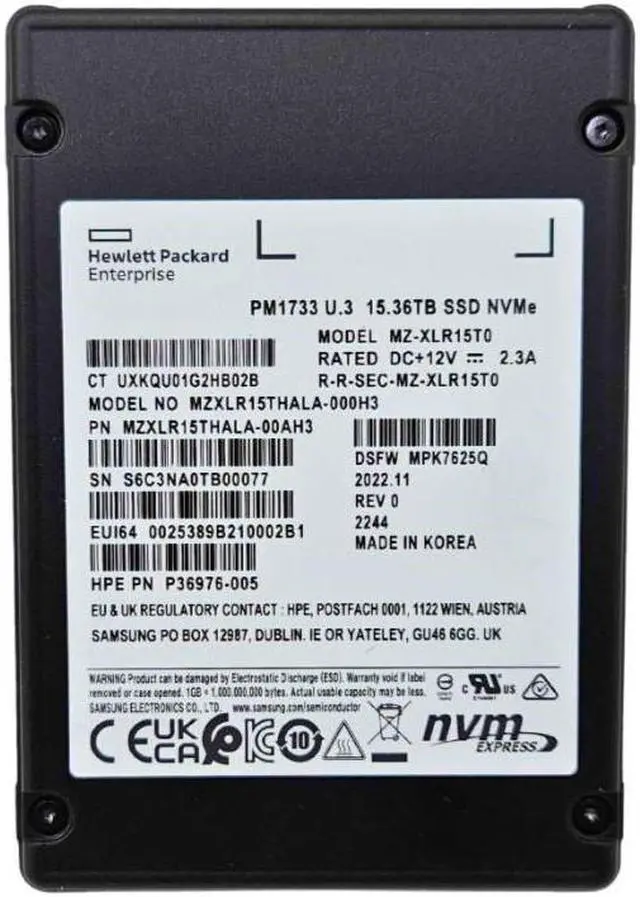 Product Description: SAMSUNG Pm1733 MZ-XLR15T0 - Solid State Drive - 15.36 Tb - Pci Express 4.0 X4 (nvme) Dual Port X2