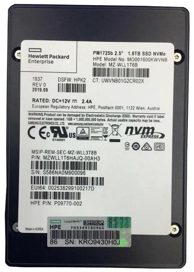 Product Description: SAMSUNG Pm1725b MZWLL1T6HAJQ-00AH3 - Solid State Drive - 1.6 Tb - Pci Express 3.0 X4 (nvme)