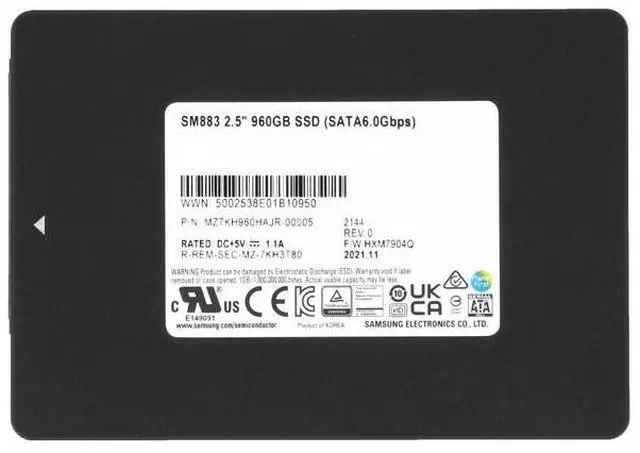 Product Description: SAMSUNG Sm883 MZ7KH960HAJR - Solid State Drive - 960 Gb - Sata 6gb/s
