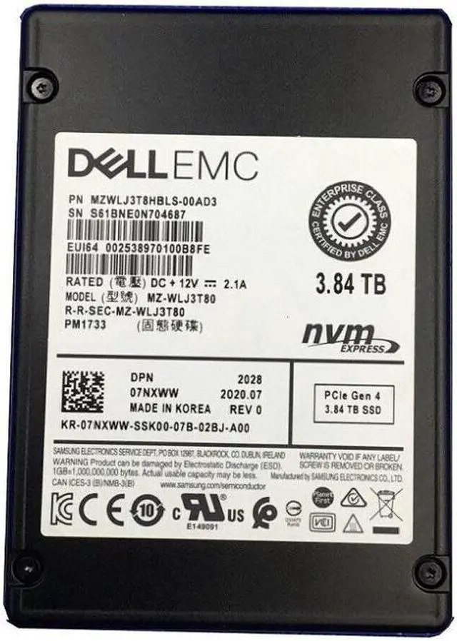 Product Description: SAMSUNG Pm1733 MZWLJ3T8HBLS-00AD3 - Solid State Drive - 3.84 Tb - Pci Express 4.0 X4 (nvme)