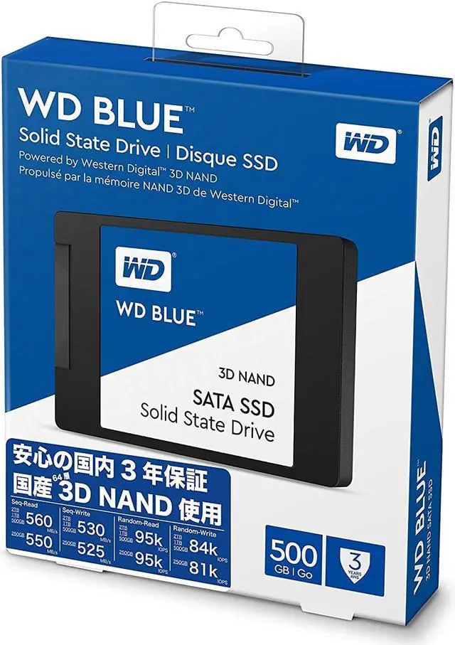 WD Blue 3D NAND 500GB PC SSD - SATA III 6 Gb/s 2.5"/7mm Solid State Drive - 560 MB/s Maximum Read Transfer Rate - 530 MB/s Maximum Write Transfer Rate