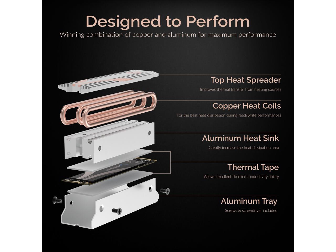 - Designed for desktop computers.Winning combination of copper and aluminum for maximum performance.Compatible with Single/Double sided M.2 2280 SSDs.Thermal tape, screws, & screwdriver included!Easy to install.