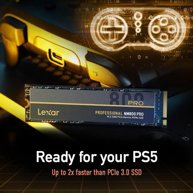 Its backward compatibility with PCIe 3.0 ensures a broad range of applications and system integrations. Optimized for the PlayStation 5, this SSD is an ideal choice for gamers looking to upgrade their console's internal storage. When paired with the Lexar M. 2 2280 SSD Heatsink (available separately), the NM800 Pro not only boosts your PS5's storage capacity but also enhances its performance, allowing for an immersive gaming experience without compromise. The NM800 Pro is engineered with a focus on efficiency, featuring a 12nm controller that minimizes power consumption. This advanced design contributes to better thermal control and extends battery life, making it an excellent choice for high-performance computing tasks that demand both speed and endurance.