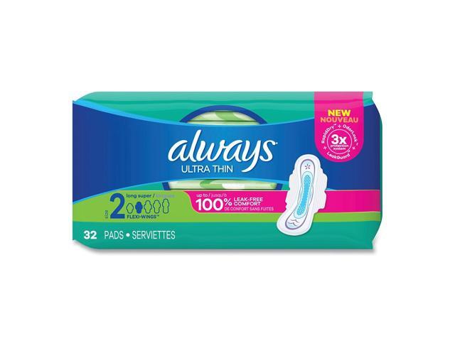 Always Ultra Thin Pads with Wings Size 2 Long Super Absorbent 32/Pack 3 Packs/Carton 97020