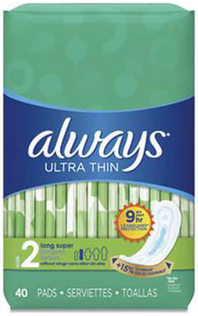 Always Ultra Thin Pads, Super Long 10 Hour, 40/Pack, 6 Packs/Carton 59874