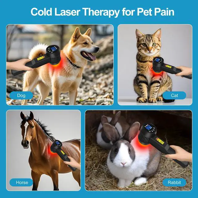 Applications of LLLT Cold Laser for Home Usecold laser device can reduce pain, inflammation, promote blood circulation, wound heal, and the light therapy can treat Arthritis, sports injuries, Back pain, frozen shoulder, acute and chronic pain, neuropathy etc. cold level laser therapy also helps regene, nerve tissue after surgery. lllt therapy can also be used for a wide range of pet conditions including gingivitis, intervertebral disc problems, post-operative pain, soft tissue trauma, open wounds and more. Suitable for humans and pets(dogs, horse, cats etc.)