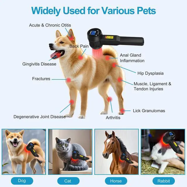 Applications of LLLT Cold Laser for Home Usecold laser device can reduce pain, inflammation, promote blood circulation, wound heal, and the light therapy can treat Arthritis, sports injuries, Back pain, frozen shoulder, acute and chronic pain, neuropathy etc. cold level laser therapy also helps regene, nerve tissue after surgery. lllt therapy can also be used for a wide range of pet conditions including gingivitis, intervertebral disc problems, post-operative pain, soft tissue trauma, open wounds and more. Suitable for humans and pets(dogs, horse, cats etc.)