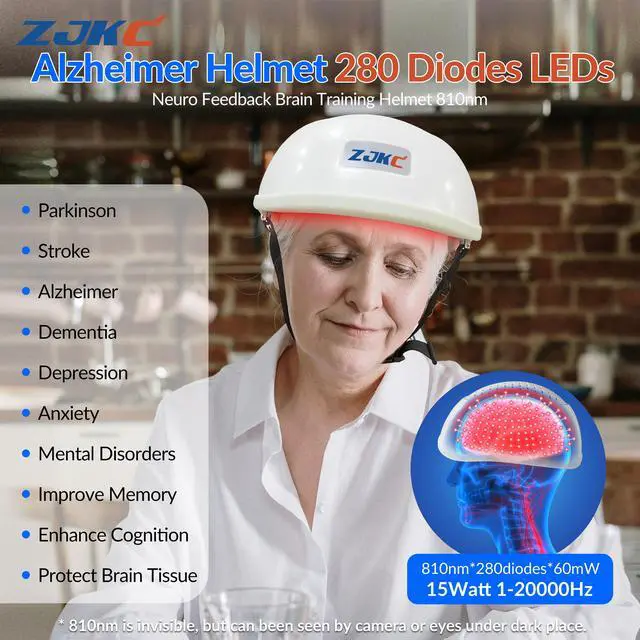 - Photobiomodulation Therapy with 280pcs LED 810nm Helmet:Brain photobiomodulation (PBM) machine use of red or near-infrared light to stimulate, heal, regenerate, and protect tissue that has either been injured, is degenerating, or else is at risk of dying. The results suggest that the PBM light therapy can improve the functions of the frontal brain of older people in a safe and cost-effective manner. The brain injury helmet is easy to wear and can be treated anywhere. The scientific and humanized design allows you to enjoy a relaxed feeling while undergoing treatment.