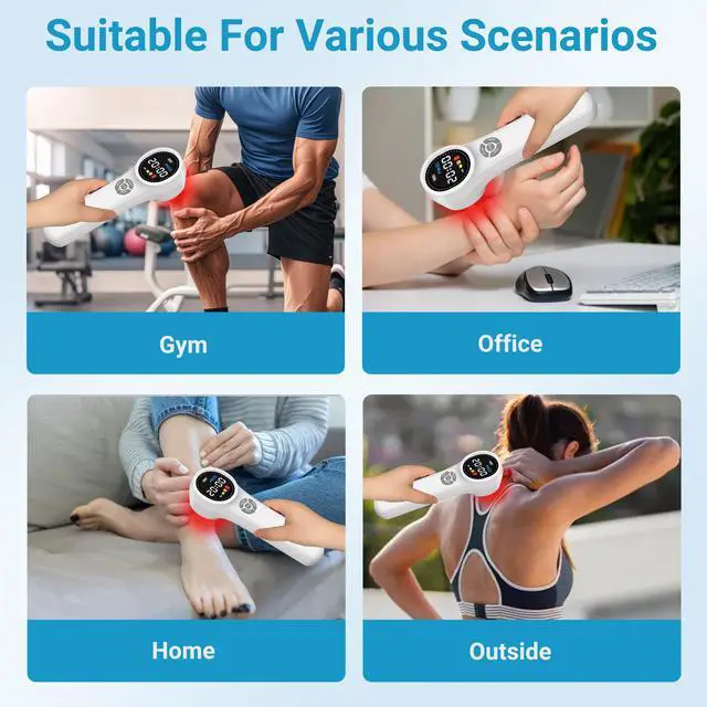 This product utilizes dual-wavelength precision treatment technology, equipped with both 650nm red light and 808nm near-infrared light sources. It belongs to the category of non-invasive low-energy laser therapy (LLLT, also known as photobiomodulation therapy PBMT). Its treatment principle is based on the fact that specific wavelengths of light penetrate the skin, activating mitochondrial energy metabolism, promoting local blood circulation and tissue repair. Clinically proven to be non-drug dependent, without side effects, safe and painless, it meets medical-grade professional standards, helping to accelerate the recovery process and offering a cost advantage compared to long-term physiotherapy institutions.
