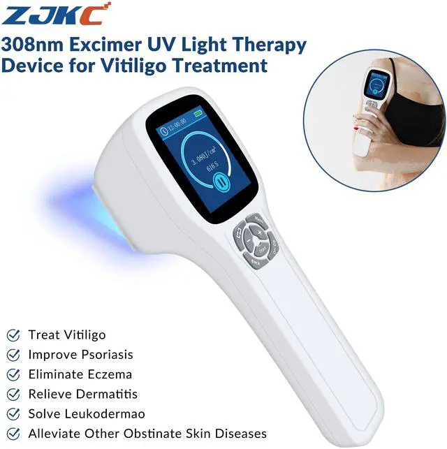 [308nm UVB Phototherapy Light] 308 excimer ultraviolet light therapy is narrow-spectrum ultraviolet B band phototherapy device with a peak wavelength of 308nm. Blue light therapy can direct high-energy uv rays to the treatment site, that`s targeted therapy, protecting normal skin. Non-invasive treatment of various skin diseases without side effects. Such as vitiligo, psoriasis etc. Suppresses overactive immune system, activate pseudo-catalase, boosts vitamin D levels.