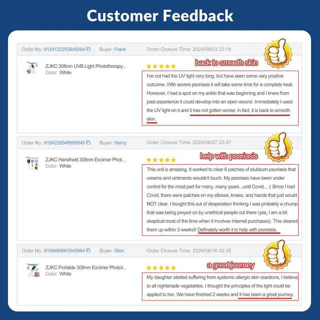 [308nm Wavelength & 49 Diodes] Clinically proven 308nm excimer light is the best wavelength to treat vitiligo psoriasis. Equipped with 49 medical diodes, greatly strengthens effects of treating various skin diseases. Excimer phototherapy device penetrates multiple skin tissues, reaches the base layer of skin, accurately acts on the core area of the lesion, Induce T cell death, enhance immunity and eliminate lesions. Promote melanin proliferation, even skin tone, promote wound healing