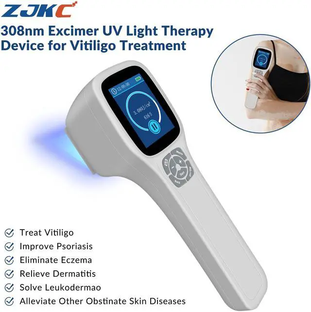 [308nm UVB Phototherapy Light]308 excimer ultraviolet light therapy is narrow-spectrum ultraviolet B band phototherapy device with a peak wavelength of 308nm. Blue light therapy can direct high-energy uv rays to the treatment site, that`s targeted therapy, protecting normal skin. Non-invasive treatment of various skin diseases without side effects. Such as vitiligo, psoriasis etc. Suppresses overactive immune system, activate pseudo-catalase, boosts vitamin D levels.