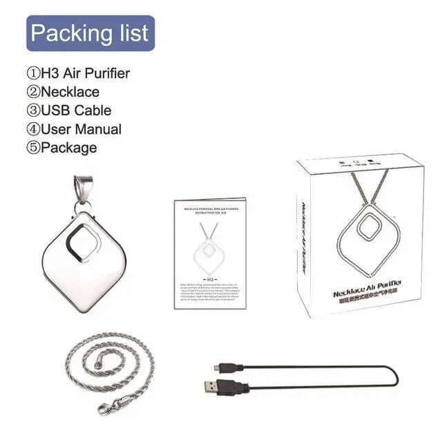 Breathe cleaner air wherever you go with the H3 Pendant Necklace Negative Ion Air Purifier. Featuring high-efficiency ion release (>4000 ions/m²), anti-smoke and anti-haze protection, and a stylish pendant design, it's perfect for home, car, and outdoor use.