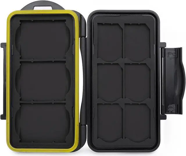 This case features a waterproof molded rubber interior lining that keeps your memory cards securely in place. It can hold up to 3 XQD/CFExpress and 6 SD cards in one case and features an ergonomic locking system.
