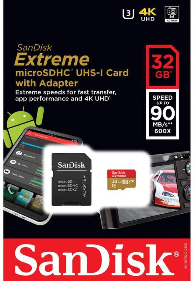 You can now maximize the performance of your smartphone, tablet, or camera with the SanDisk 32GB Extreme microSDHC Class 10 U3 Memory Card. Designed to capture fast action and record Full HD or 4K Ultra HD-ready video, this memory card is perfect for Android-based smartphones, tablets, or MIL cameras. Built for extreme conditions, the SanDisk Extreme microSDHC card offers temperature proof, water proof, shock proof, and x-ray proof features, ensuring extreme durability even under challenging environmental conditions. With fast read speeds of up to 90MB/s, you can reduce the time spent transferring pictures and videos from your card to your computer.