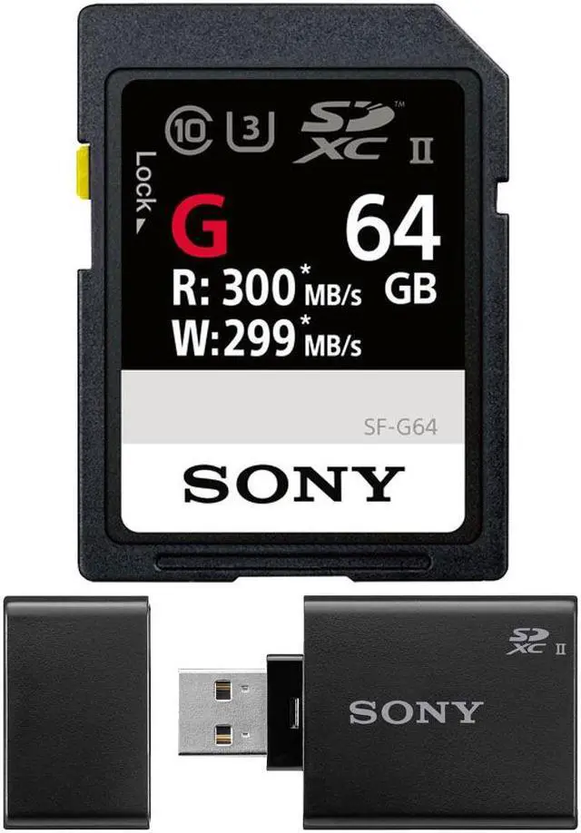 The Sony SF-G Series UHS-II 64GB SD Memory Card has up to 300 MB/s transfer speed and up to 299MB/s write speed. It's UHS-II, Class 10, U3 compliant. Its fast writing speed is excellent for 4K recording and continuous burst mode shooting.