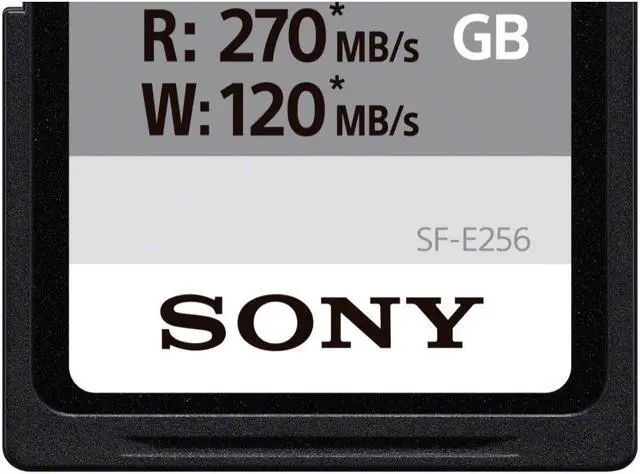 SF-E Series UHS-II SD Card with fast write speeds of up to 120 MB/s and up to 270 MB/s read, File Rescue software, and protection from water, dust, drops, UV exposure, and X-rays.