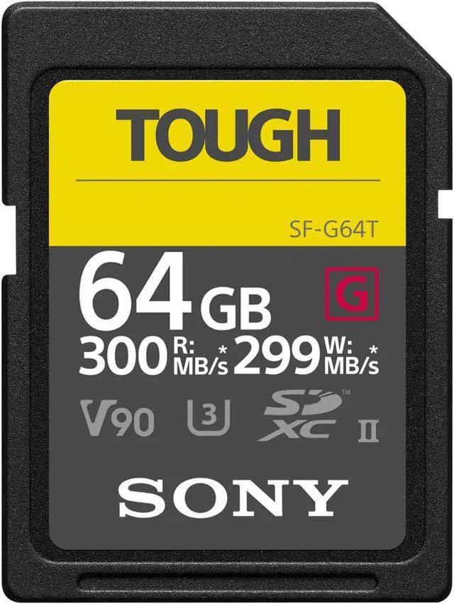 Designed for professionals who shoot in extreme conditions and require the highest performance. With bend-resistance that's 18-times greater than the SD standard, the highest level waterproof and dustproof grades (IP68), the fastest read speed at up to 300 MB/s and fastest write speed at up to 299 MB/s, the SF-G series TOUGH specification protects professional work. Fast File Transfer Take burst-shooting and high-resolution video recording to the next level with ultra-fast write speeds up to 299 MB/s — fast enough for even the highest performance DSLRs with a UHS-II interface. Toughest Card A monolithic construction with high hardness materials have resulted in high level of bend strength, 18 times greater than the SD standard.