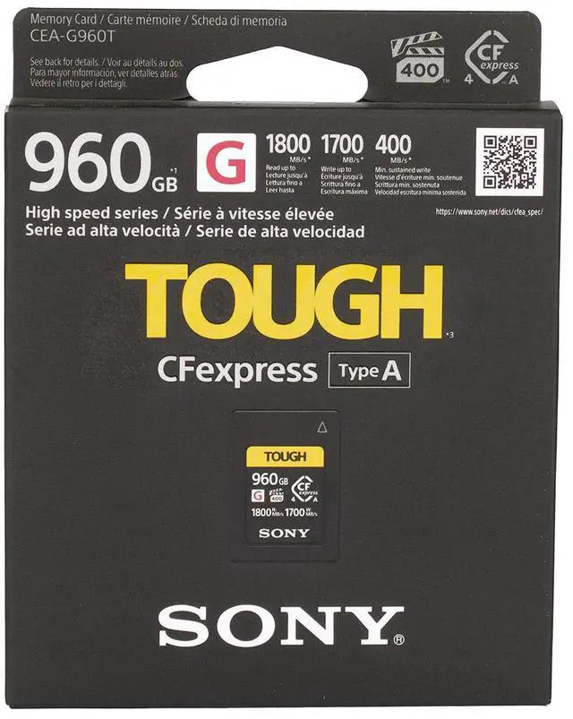 Next-Level Performance. Ultimate Reliability. Push the limits of performance with the CEA-G Series CFexpress Type A Memory Card, engineered for creators who demand speed, capacity, and durability. Supporting the latest CFexpress 4.0 standard and VPG400 certification, this card delivers read speeds up to 1800 MB/s and write speeds up to 1700 MB/s, ideal for uninterrupted 4K video recording and high-speed still bursts. Available in capacities up to 960GB, it offers the freedom to shoot longer sessions without interruption. Built to thrive in extreme conditions, the TOUGH design provides 10x the bend resistance and 5x the drop strength of standard CFexpress Type A cards.