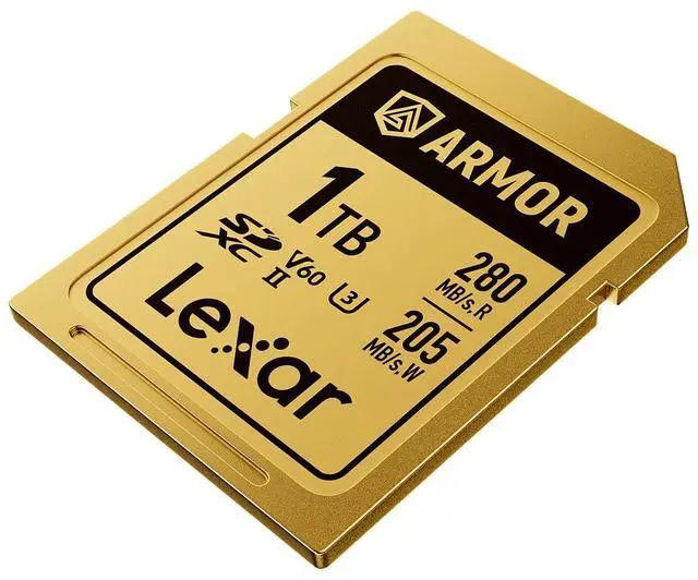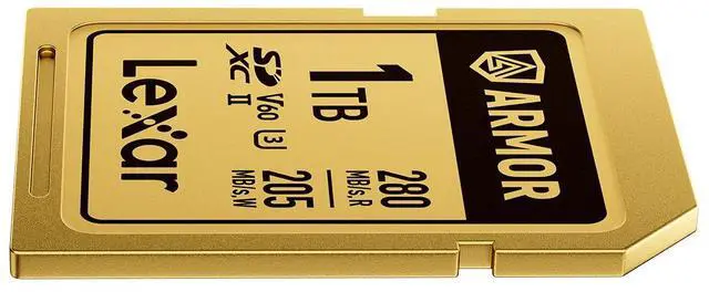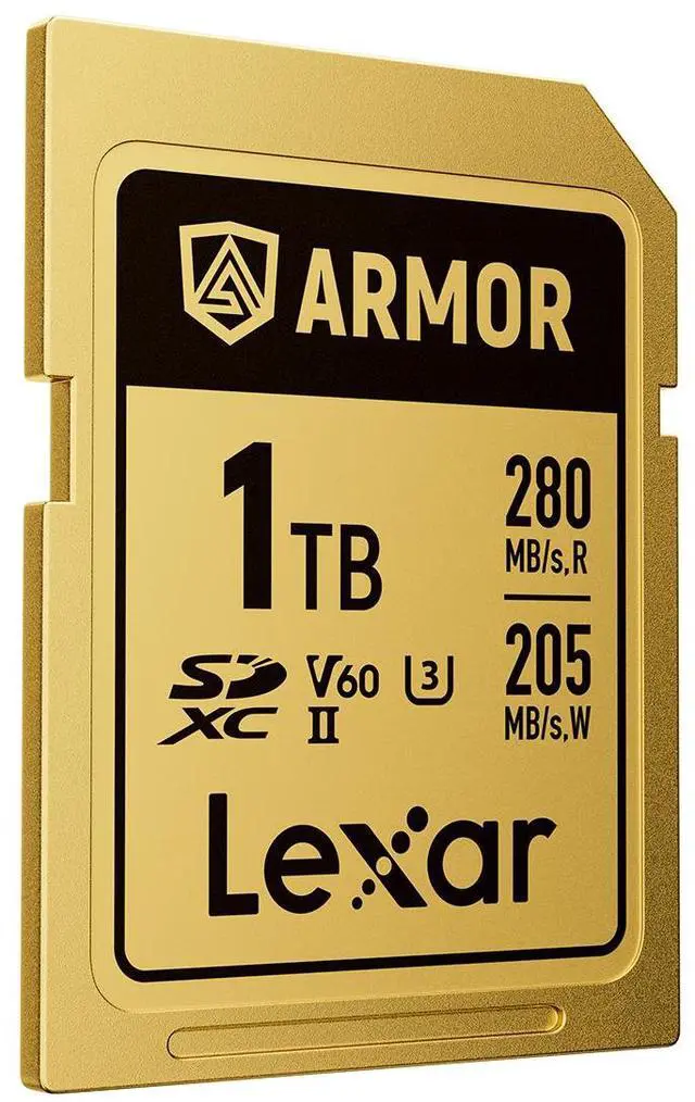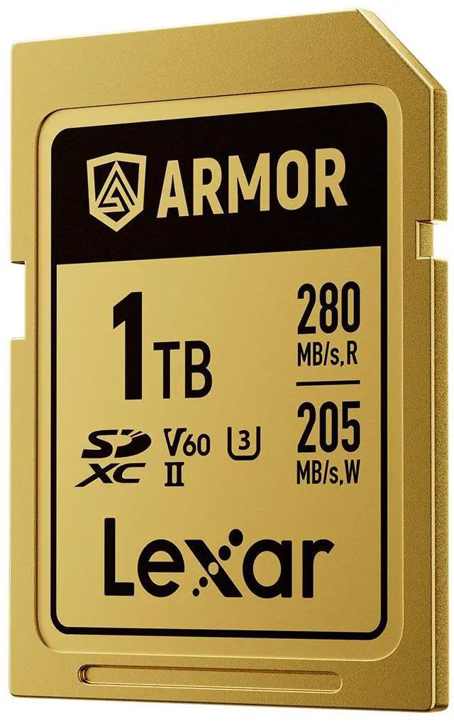 Simplified Yet Stronger DesignBuilt without a fragile write-protect switch, the card also features a ribless design to further prevent breaks, and laser engravings replace manufacturing labels to ensure surface information never wears off. Seamlessly Record High-Res 6K VideoClassified with a V60 video recording speed, the Lexar ARMOR GOLD SDXC UHS-II Card can record up to 4K 60P and 6K 30P videos and a write speed of 205MB/s ensures less lag and no frame drops. Boost Your Post-Production EfficiencyA read speed up to 280MB/s quickly and reliably transfers photos and videos so you can offload and get back out in the field.