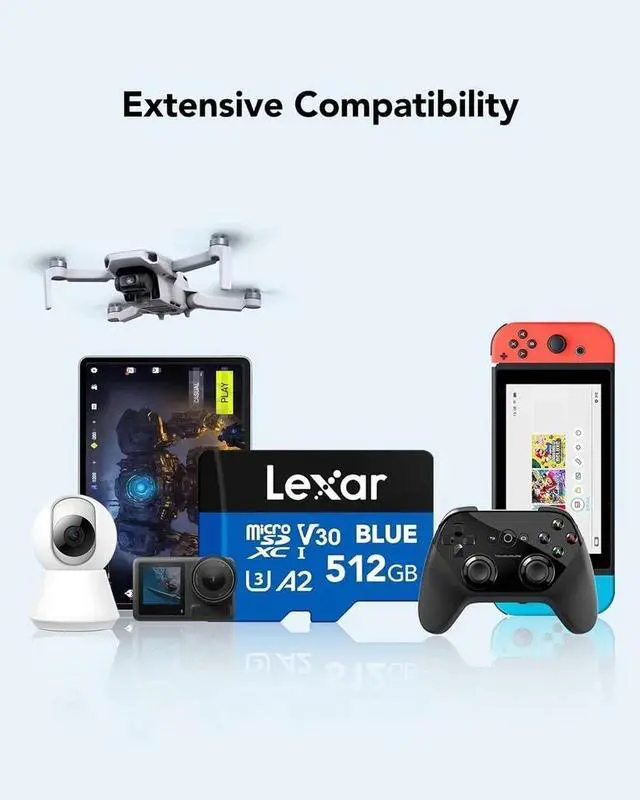 The Lexar 512GB Blue microSDXC UHS-I Memory Card is designed to provide high-capacity storage and reliable performance for everyday digital needs. With 512GB of space, it allows you to store a large volume of photos, videos, applications, and files across multiple devices.