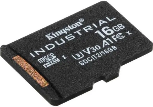 Kingston Industrial 16 GB Class 10/UHS-I (U3) V30 microSDHC - 3 Year Warranty A1 PSLC CARD SINGLE PACK W/O ADAPT Superior endurance and reliability across industrial applications Kingston's Industrial microSD card is designed and tested to withstand the most demanding environmental factors. With an operating temperature of -40°C to 85°C, it can operate normally even in extreme desert heat to below freezing conditions. The card utilizes industry-leading pSLC mode to provide top transfer speeds up to 100MB/s. It is rated up to 1920 TBW with 30K P/E cycles and a built-in feature set specific to endurance, performance, and industrial needs.