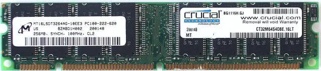MEMORY, 256MB SYNCH 100MHz CL2, CRUCIAL CT32M64S4D8E.16LT