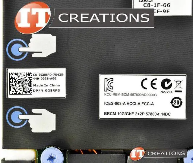 • Product Details:Description: Dell - Broadcom 57800 Quad-Port 10& 1Gb 10Gbase-T& 1000Base-T Pci-E R Series Daughter Card Nic.Manufacturer Part Number: G8RpdWeight5.1Height1Width1Length1"