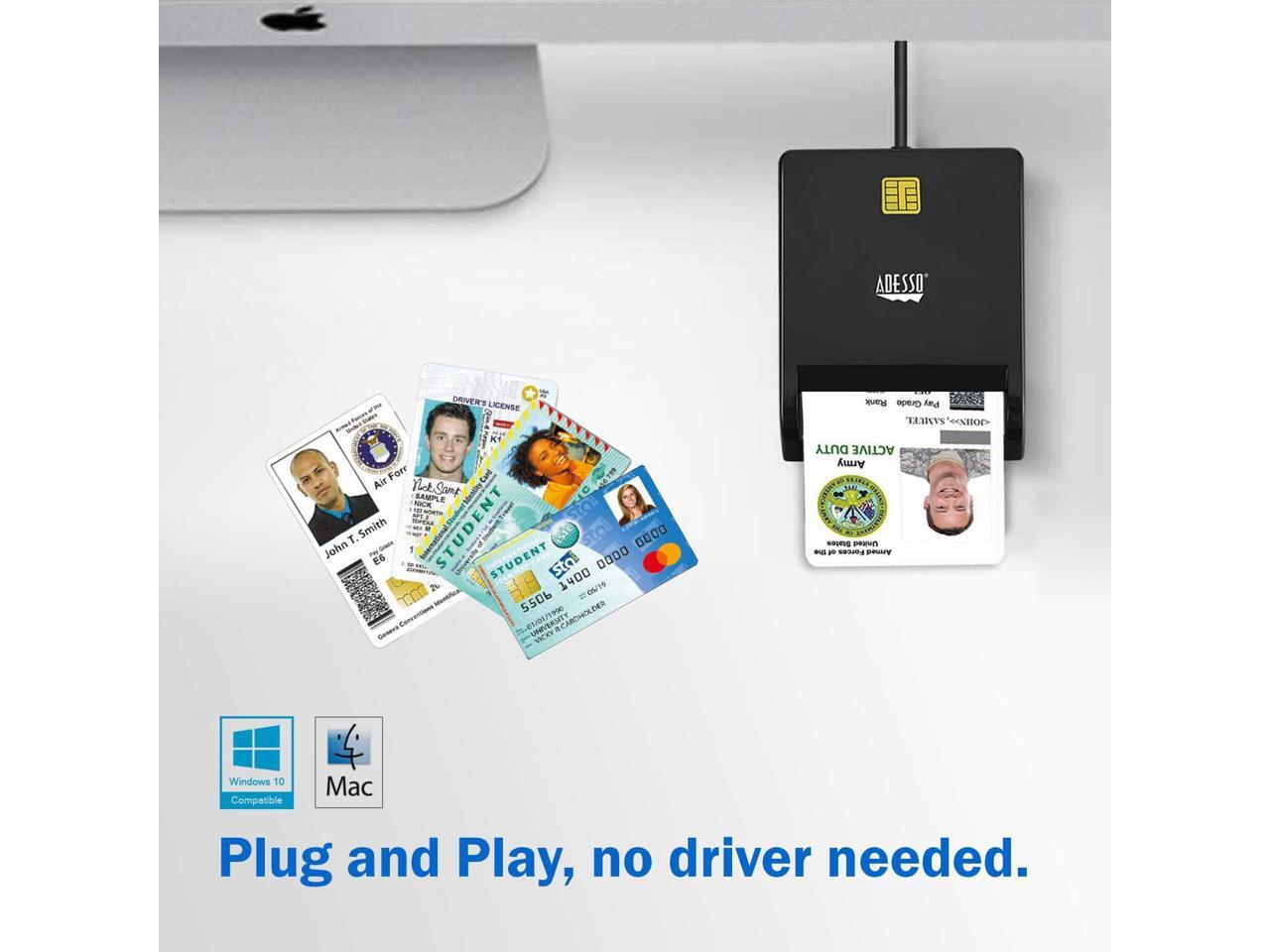 ADESSO SCR-100 ADESSO TAA CAC USB SMART CARD READER, WORKS FOR WINDOWS AND MAC