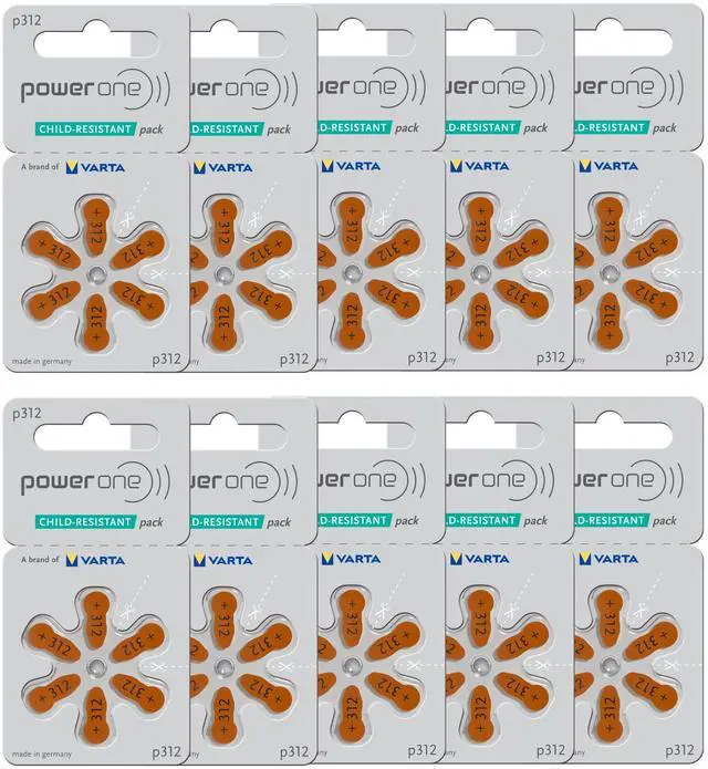 Power One Size 312 MERCURY FREE Hearing Aid Batteries (60 batteries)