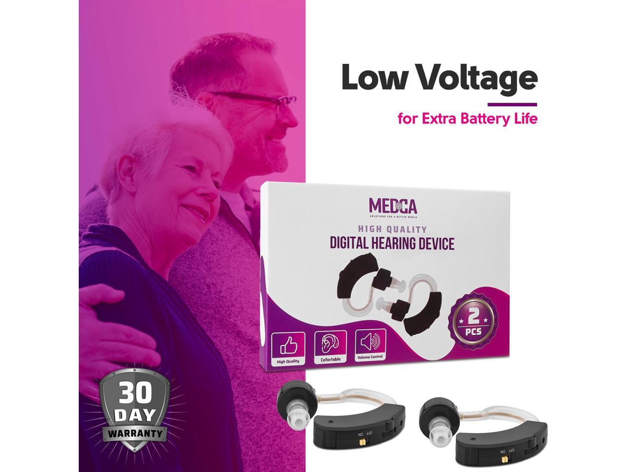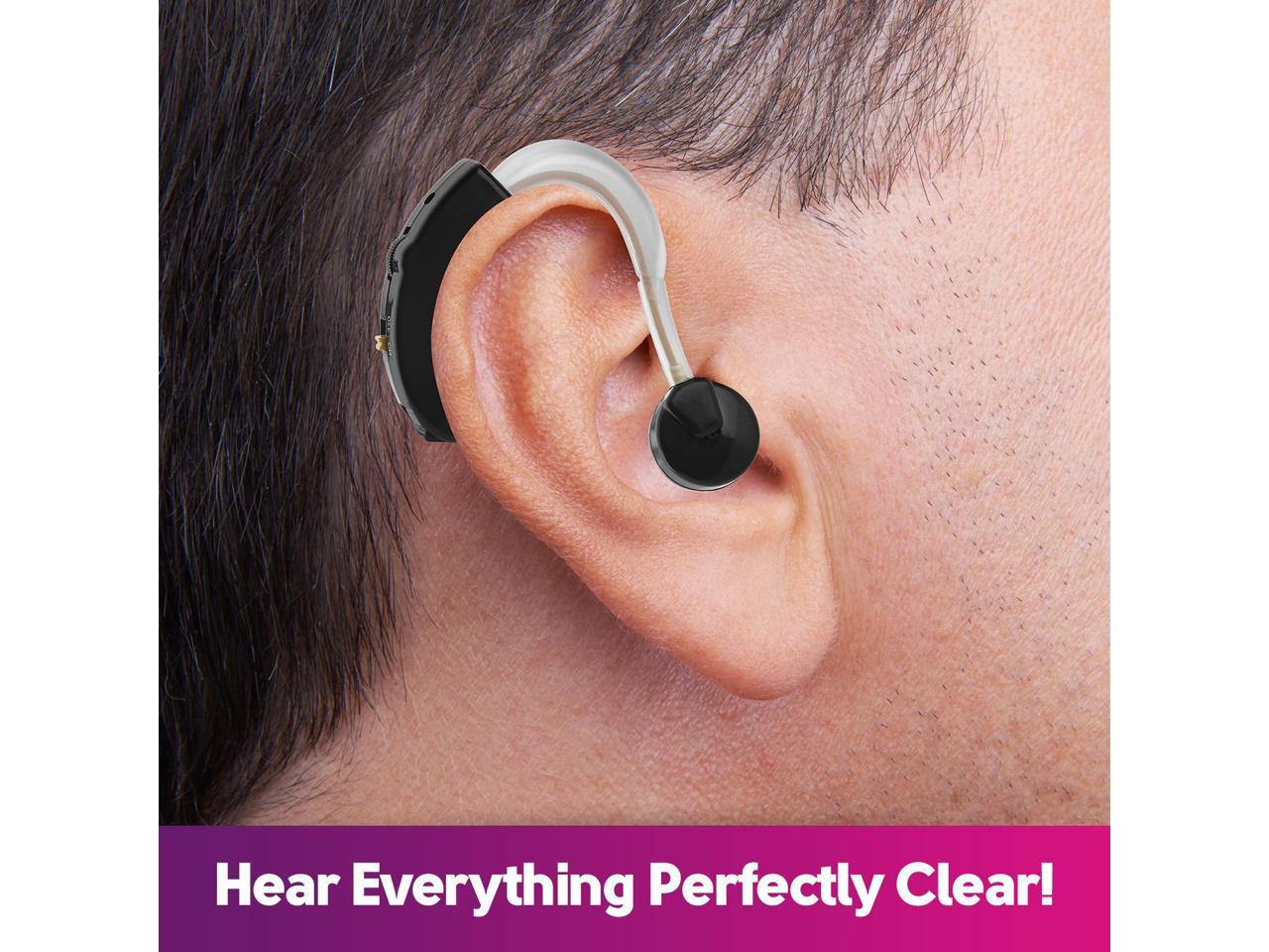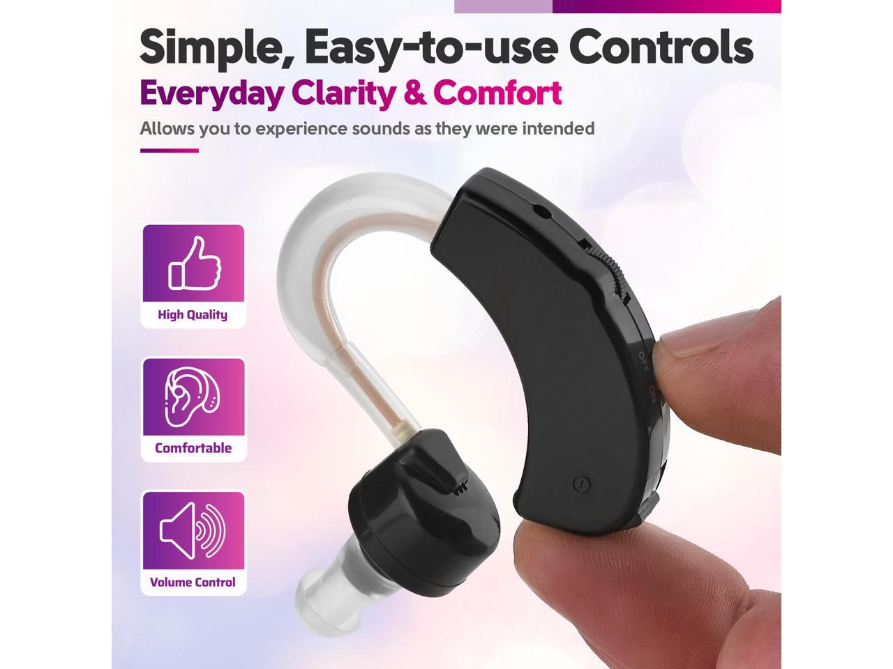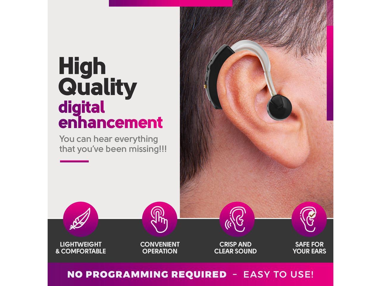 - Digital Hearing Amplifiers - Set of 2 Small BTE Sound Amplifiers, a Behind The Ear Personal Amplification Device and Sound Enhancer Aids with Noise Reducing Feature for Adults, Seniors & Women, Black