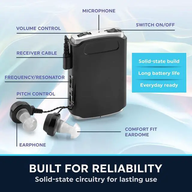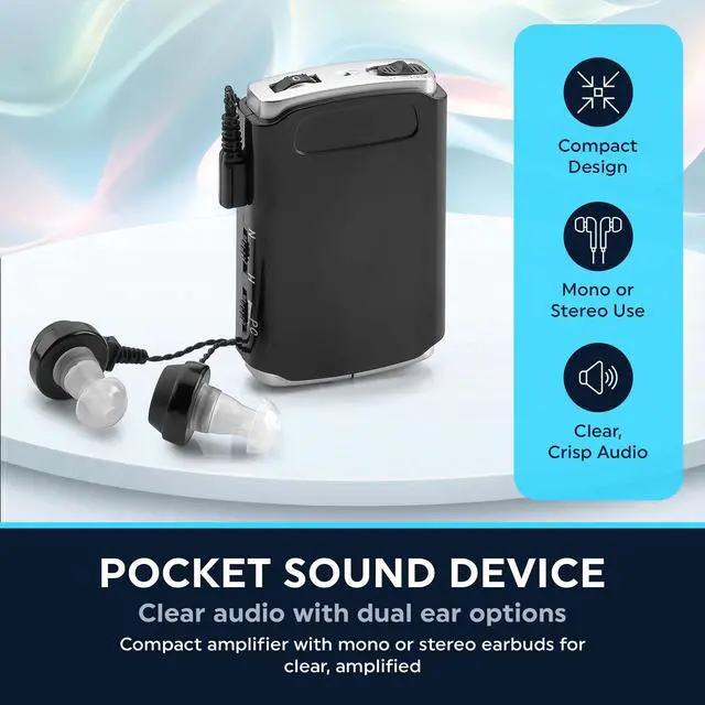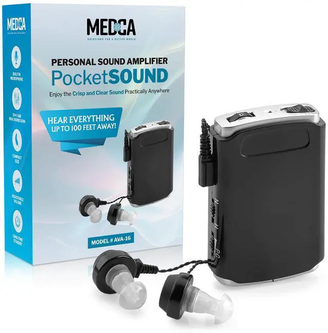 MEDca Personal Hearing Amplifier features a unique design. It's ideal for birdwatchers, senior citizens, sports fans, TV, hunting, hospitals and more. The voice enhancer device comes with a belt clip allowing you to secure it on your person and use it on the go. It features solid state micro electronic circuitry and has not only one but two setsKEY_TAB of premium mono and stereo headphones with built in microphones. This lets you use the MEDca Personal Hearing Amplifier in any environment safely. It also has a compact size that fits inside the smallest pocket and includes discreet earbuds designed to fit in any ear type. The package includesKEY_TAB the sound voice enhancer device withKEY_TAB duo mic/ear and an extra headphone and microphone set.KEY_TAB
