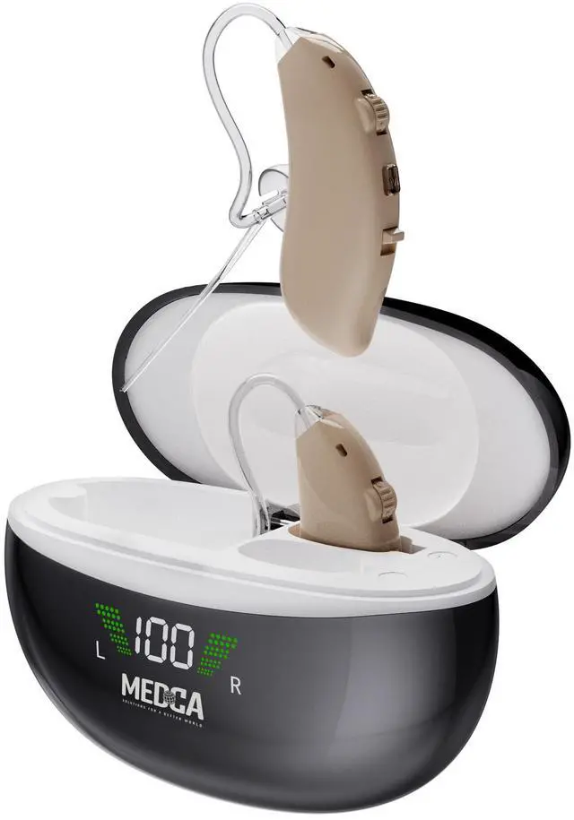 Rechargeable Hearing Aids for Seniors, BTE Digital Hearing Amplifier with Noise Cancelling, Hearing Aid, Magnetic Charging Case and Volume Control, Dual Micphone