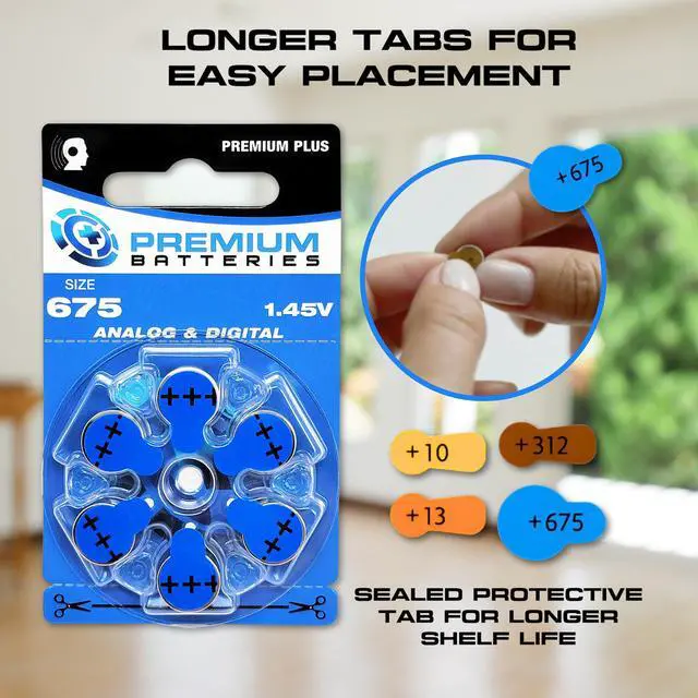 Premium Batteries Size 675 Premium Plus Zinc Air Hearing Aid Batteries 1.45V (60 pcs)