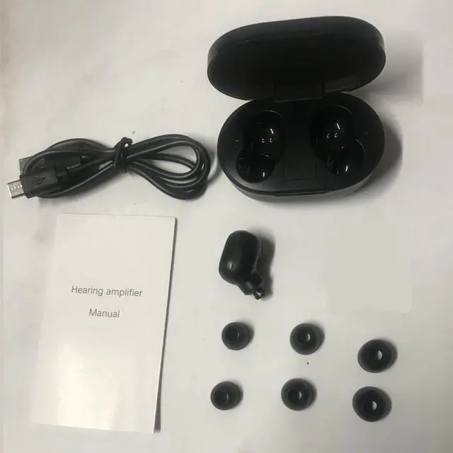 Rechargeable Hearing Amplifier to Aid Hearing, Completely-in-Canal (CIC) Mini analog Hearing Devices for Seniors & Adults, black, left ear+charging case