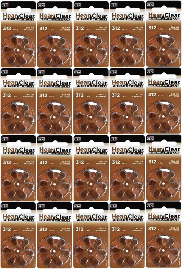 Hear Clear Size 312 PR41 Hearing Aid Batteries Brown Tab (120 Batteries)