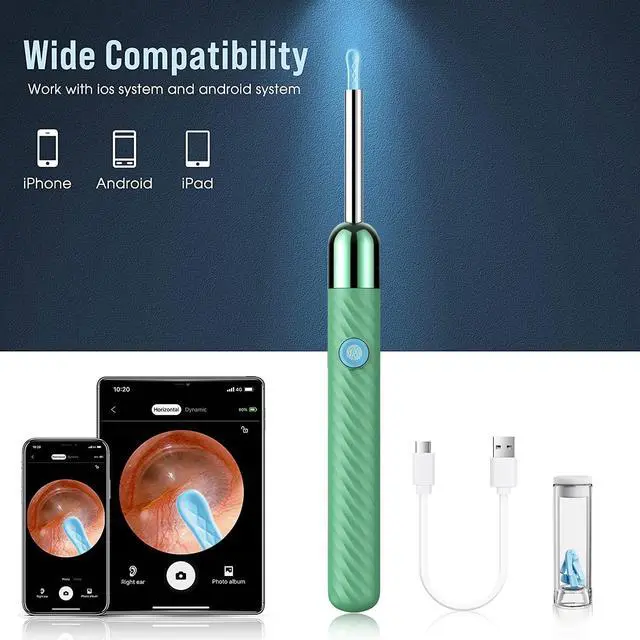 Ear wax removal tool camera is equipped with a 360° wide-angle lens to provide a large covered field of view. The built-in 6-axis gyroscope can provide stable and smooth image transmission even when rotating, and maintain a stable and accurate video direction.