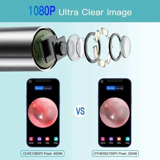 Built in 360°wide-angle professional grade lens and 1080P full HD resolution can provide superior clear image. 3.5 mm ultra slim lens that can reach deep into the ear canal up to the eardrum, suitable for different size of ears.