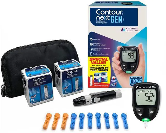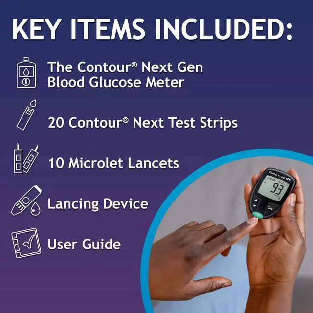 The CONTOUR NEXT GEN Blood Glucose Monitoring System smart meter and app system combines remarkable accuracy with ease-of-use to benefit a broad range of people living with diabetes. By integrating your blood glucose meter with a smartphone app you may simplify the management of your diabetes. Blood glucose results captured throughout the day can be automatically synced and logged. Over time your results may create meaningful insights into how your activities affect your blood glucose levels.