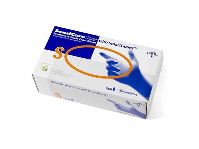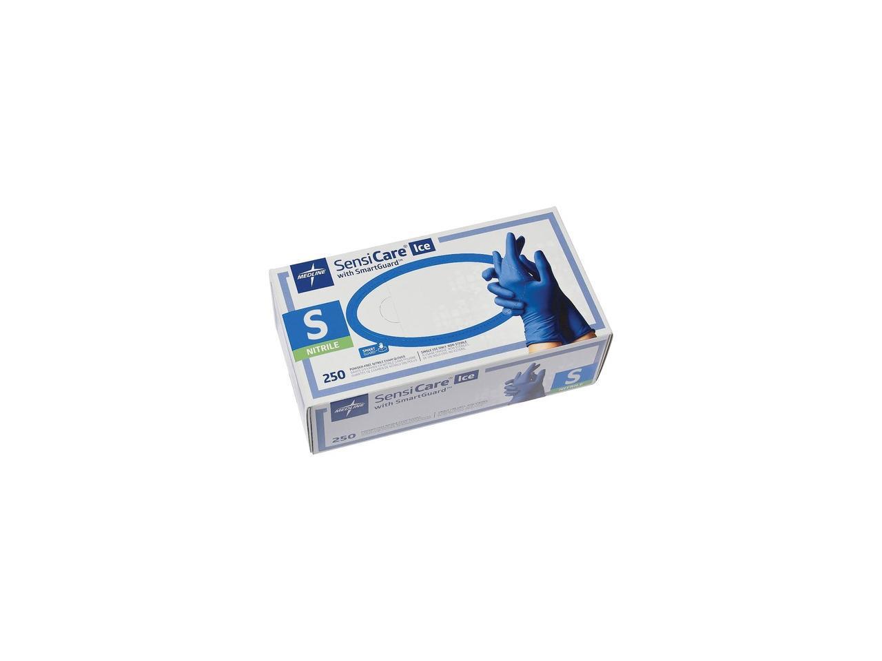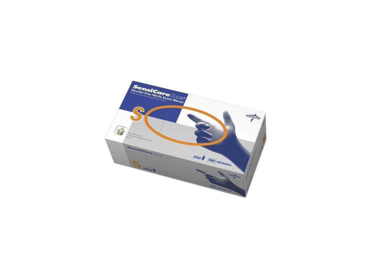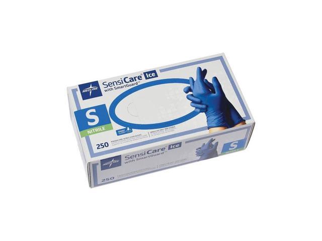 Medline Sensicare Ice Nitrile Exam Gloves Powder-Free Small Blue 250/Box MDS6801