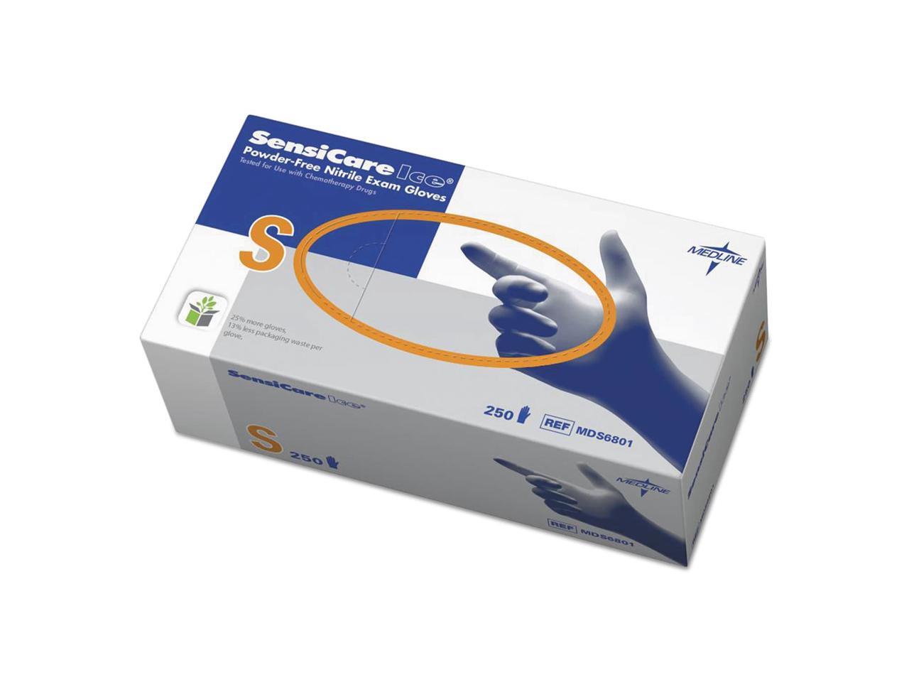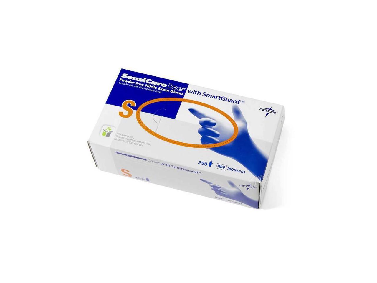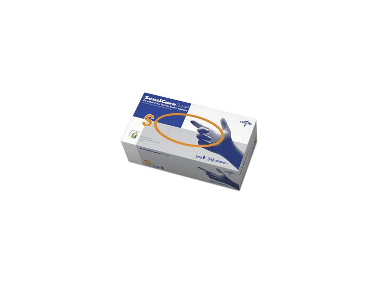 Medline Sensicare Ice Nitrile Exam Gloves Powder-Free Small Blue 250/Box MDS6801