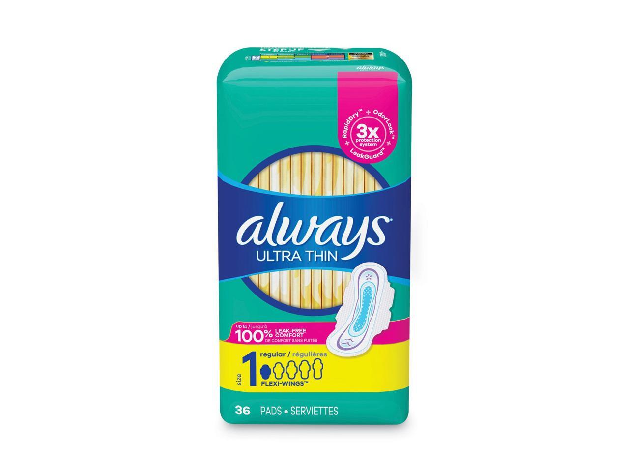 Always Thin Ultra, Regular With Wings- 36 wipes/6Pk