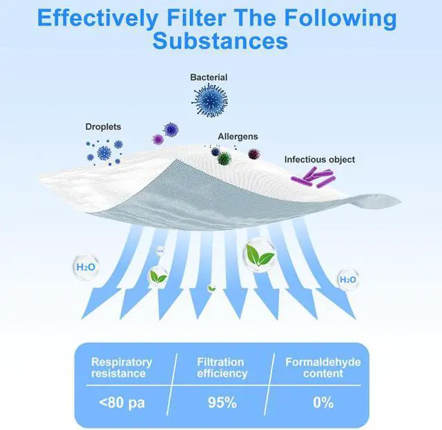 The KN95 mask can isolate smaller particles and adapt more tightly to the face. It is not easy to leak air from the periphery and the particle filtration efficiency can reach 95% under standard conditions.