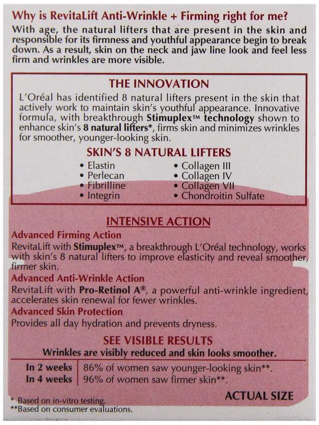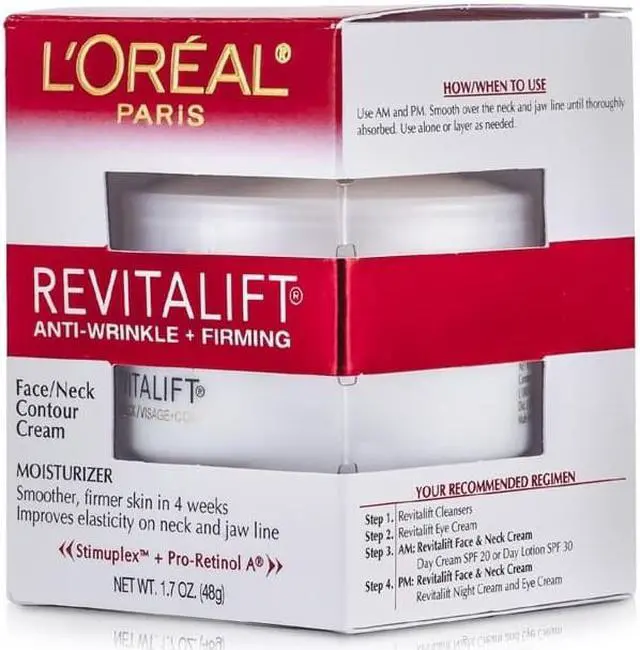 L'Oreal Paris Revitalift Anti-Wrinkle & Firming Moisturizer For Face & Neck - 1.7 oz. Brand New.. Smoothes wrinkles and firms skin as it remodels skins surface from within. Unique daily moisturizer created specially to care for the face and neck. Increases cell turnover for visibly radiant and revitalized skin... Revitalift Anti-Wrinkle & Firming Moisturizer For Face & Neck - 1.7 oz