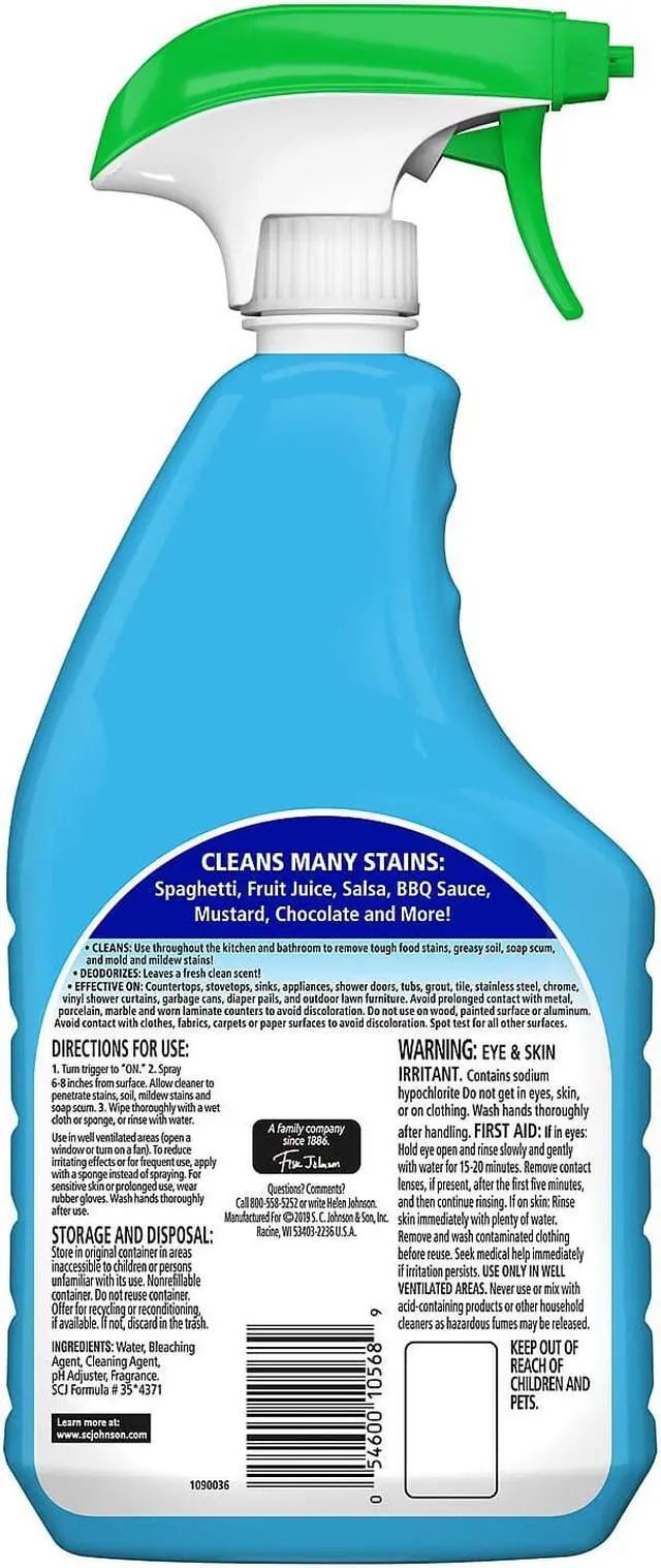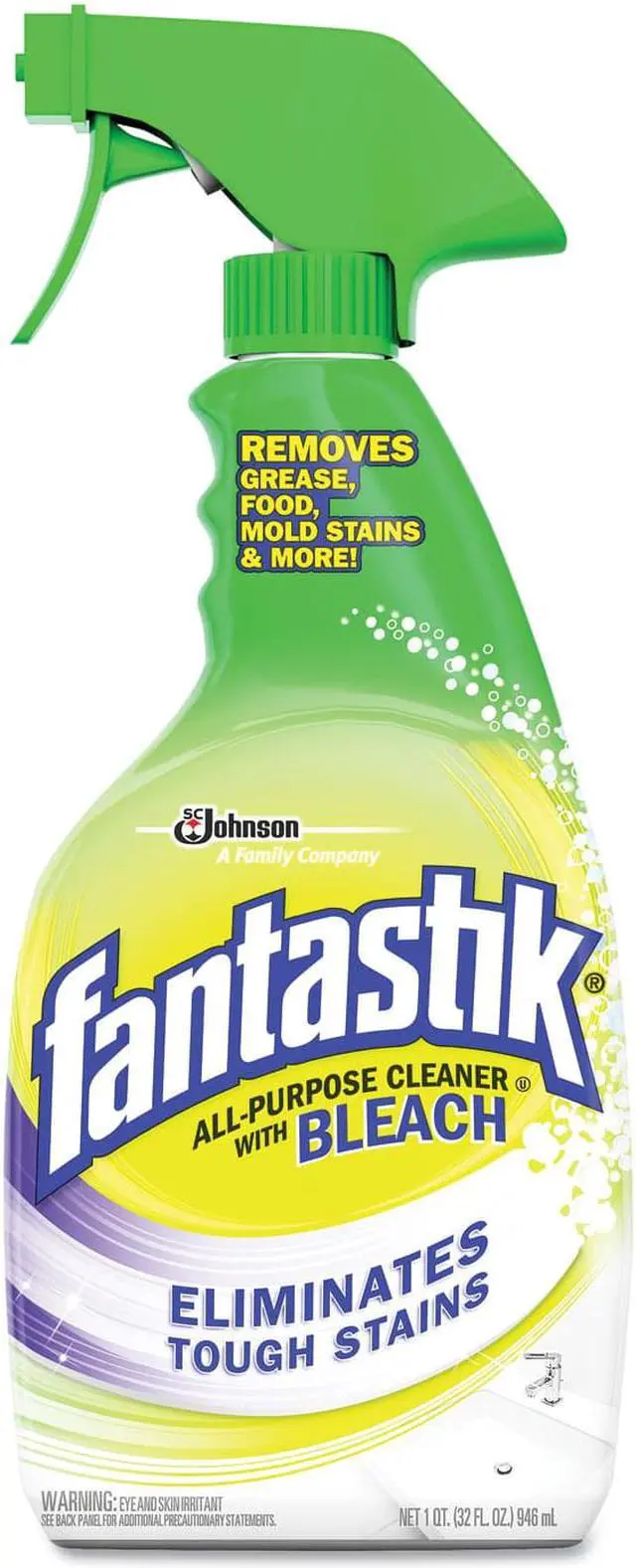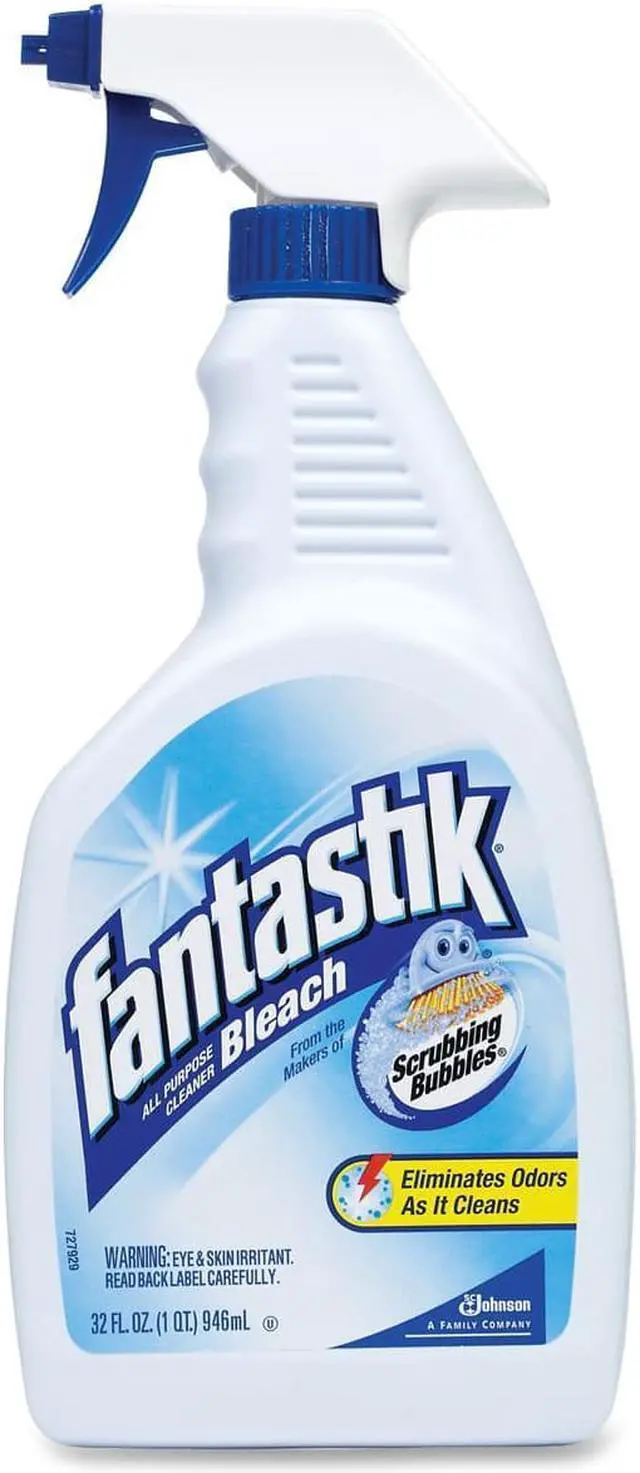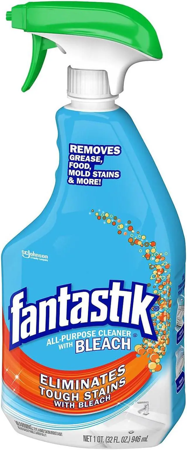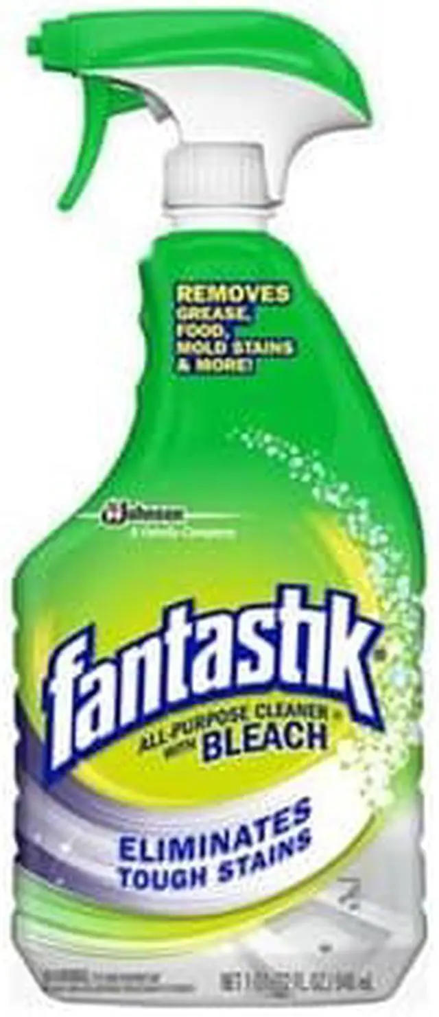 32 OZ, Fantastik With Bleach, All Purpose Cleaner, Removes Wine, Coffee, Grease, Ketchup, Mold Stains and More, For Use In Kitchens and Bathrooms, Cuts Grease and Mildew Stains.